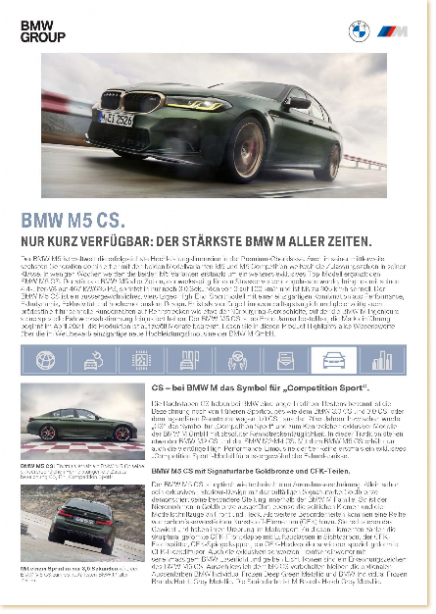 Beschreibung, Highlights und Technisches Datenblatt des BMW M5 CS